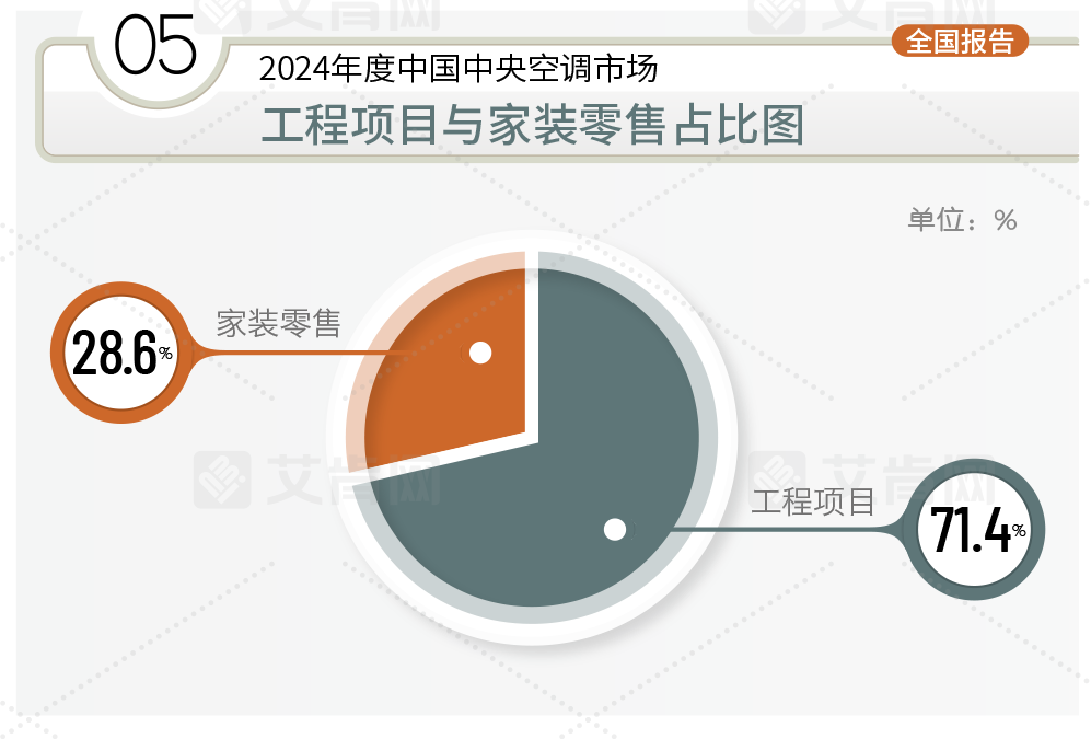 2024年,根據艾肯網統計,工程項目市場下滑幅度達到10.7%。其在全國市場的占有率達到71.4%,相比于2023年度70.0%的占有率有所提升,原因在于相對家裝零售市場,工程項目市場更具韌性和活力。