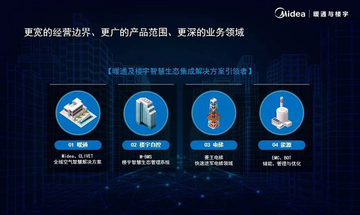 “未來,我們的業(yè)務(wù)將覆蓋暖通、樓宇自控、電梯、能源等與智慧建筑息息相關(guān)的方方面面。”美的集團(tuán)暖通與樓宇事業(yè)部總裁管金偉一語道破轉(zhuǎn)型方向。