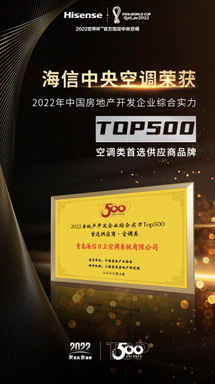 海信中央空調(diào)憑借突出的產(chǎn)品品質(zhì)與專業(yè)優(yōu)質(zhì)服務(wù),成功入選“2022中國(guó)房地產(chǎn)開發(fā)企業(yè)綜合實(shí)力TOP500 空調(diào)類首選供應(yīng)商品牌”。