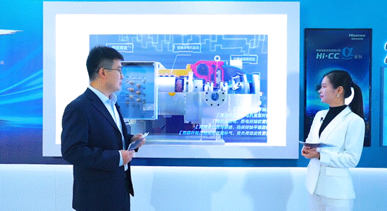 以“碳尋未來·科技同行”為主題的海信中央空調直播間,萬人在線互動,氛圍火熱。海信中央空調水機運營總監李強、海信中央空調水機技術支持工程師禹洋、海信中央空調產品企劃經理孫慧琳來到現場,為線上網友深度講解高效節能的中央空調是怎樣“煉”成的。
