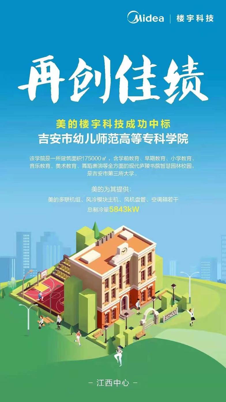 教育是國之大計,是民生之基。近期,美的樓宇科技江西中心再次傳來捷報,該中心成功中標了吉安市幼兒師范高等專科學院項目,將為該項目提供美的多聯機組、風冷模塊主機、風機盤管、空調箱若干,總制冷量5843KW。