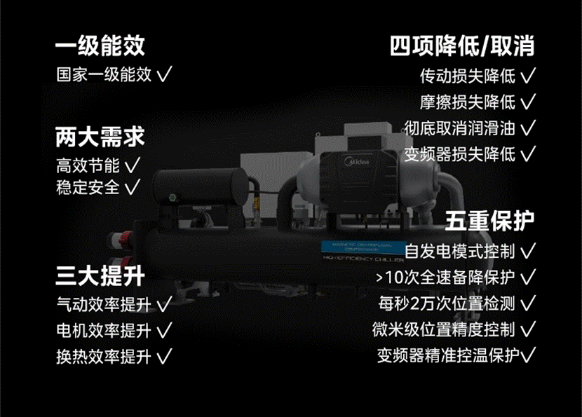 美的擁有完全自主知識產(chǎn)權及核心技術的“司南”系列磁懸浮變頻離心式冷水機組,打破了多年以來外資在磁懸浮技術領域的壟斷局面。該機組具備無油高效、穩(wěn)定可靠、寬域運行、低噪環(huán)保、節(jié)省費用等多項特點,可全面應用于機場、軌道交通、酒店、數(shù)據(jù)中心、商業(yè)新建或改造等多種建筑領域。