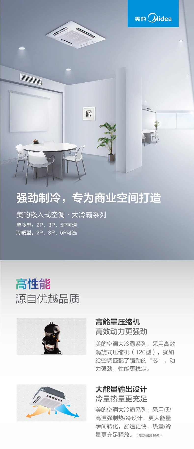 美的MIDEA2匹冷暖中央空調(diào)天花機天井機嵌入機商用吸頂機空調(diào) 四面出風 KFR-51QW/DY-B(D3)