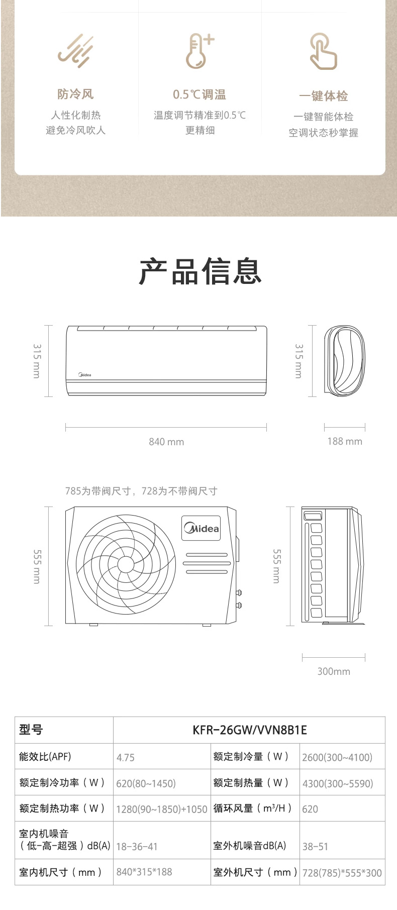 室外機外形尺寸(寬/含閥體)(單位:mm) 785