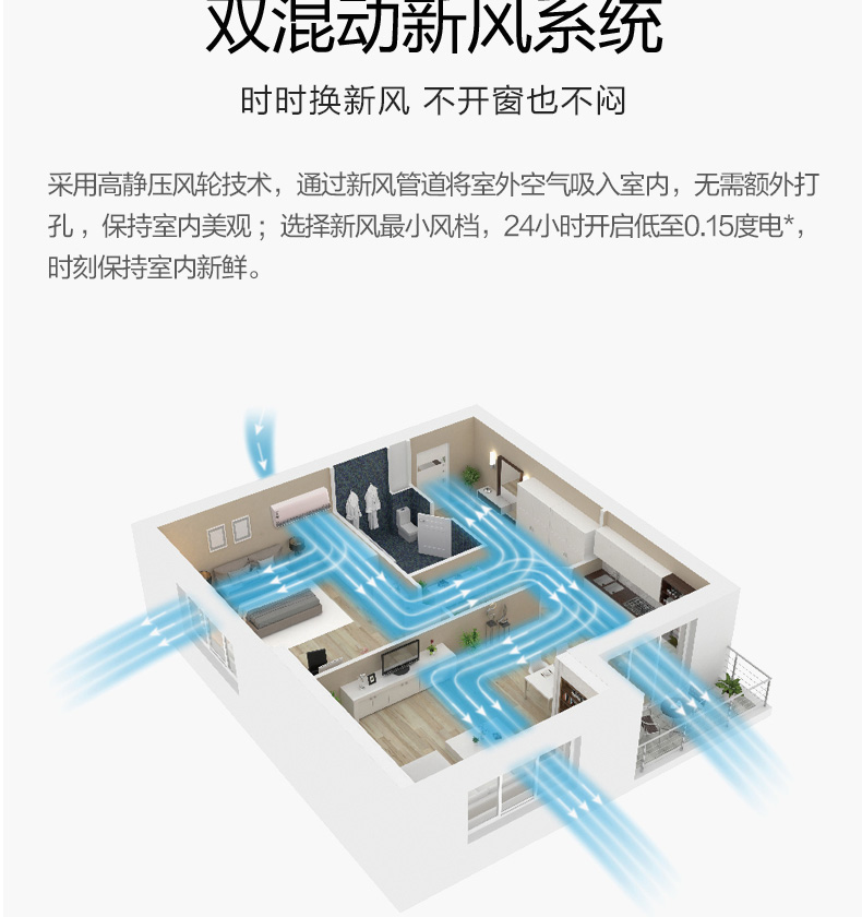 MIDEA美的1.5匹智控?zé)o風(fēng)感冷暖新風(fēng)空調(diào)KFR-35GW/BP3DN8Y-KW200(B1)